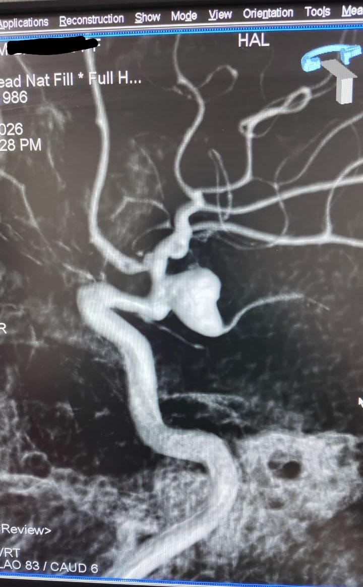 Ruptured Brain aneurysm (left ICA communicating segment wideneck aneurysm) treated with Stent Assisted Coiling.